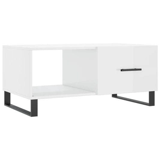 Tavolino da Salotto Bianco Lucido 90x50x40 cm Legno Multistrato