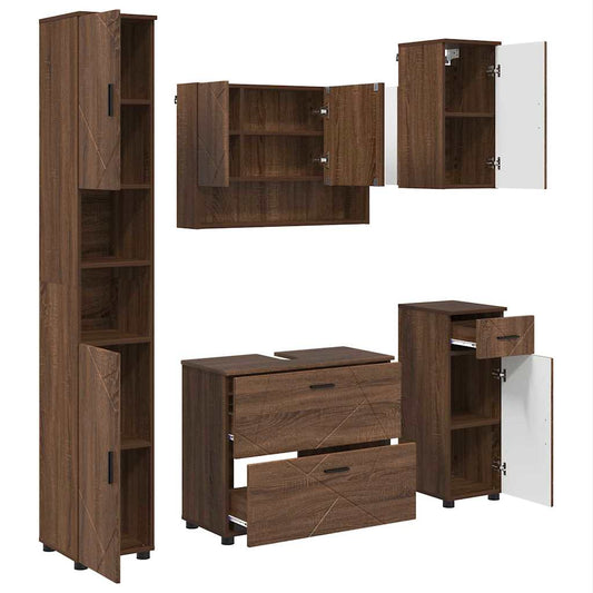 Set di mobili per il bagno con cassetto 5 pcs Rovere Marrone