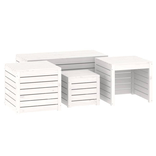 Set Cassette da Giardino 4 pz Bianco in Legno Massello di Pino