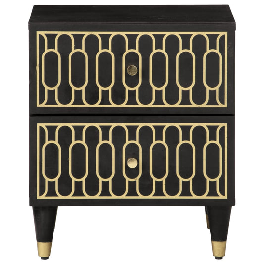 Comodino Nero 40x30x55 cm Legno Massello di Pino Riciclato