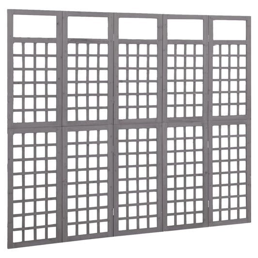 Divisorio a 5 Pannelli in Legno di Abete Grigio 201,5x180 cm