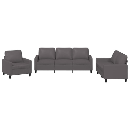 Set di Divani 3 pz con Cuscini Grigio in Similpelle