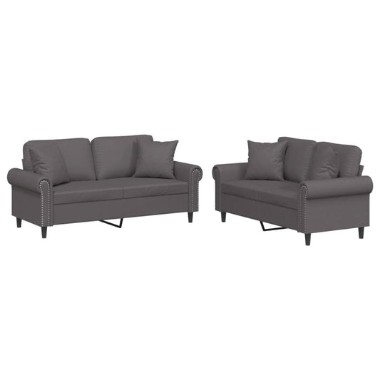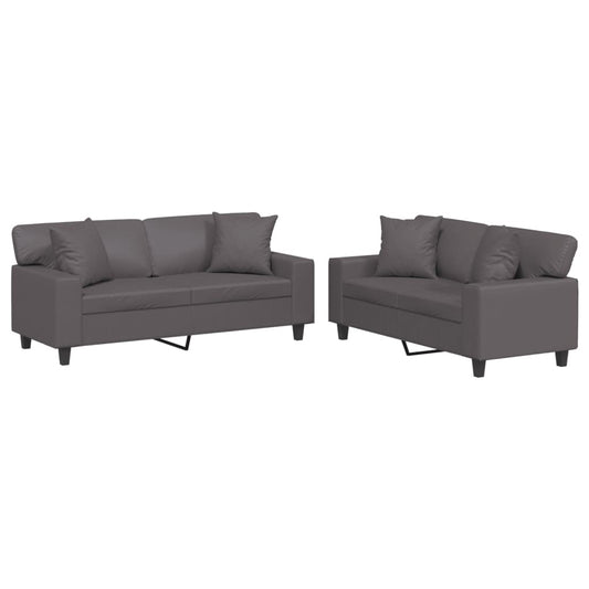 Set di Divani 2 pz con Cuscini Grigio in Similpelle