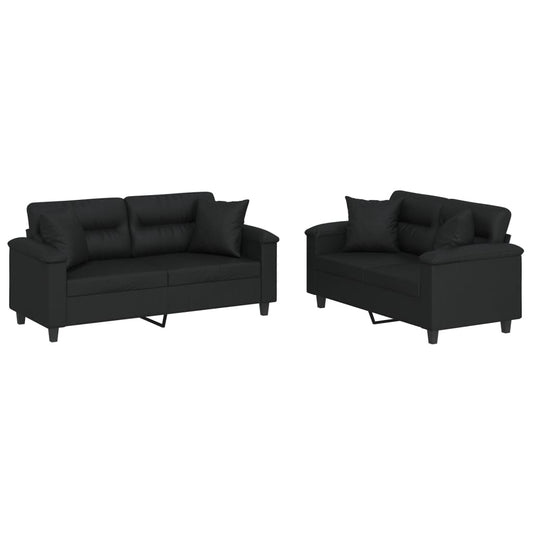 Set di Divani 2 pz con Cuscini Nero in Similpelle