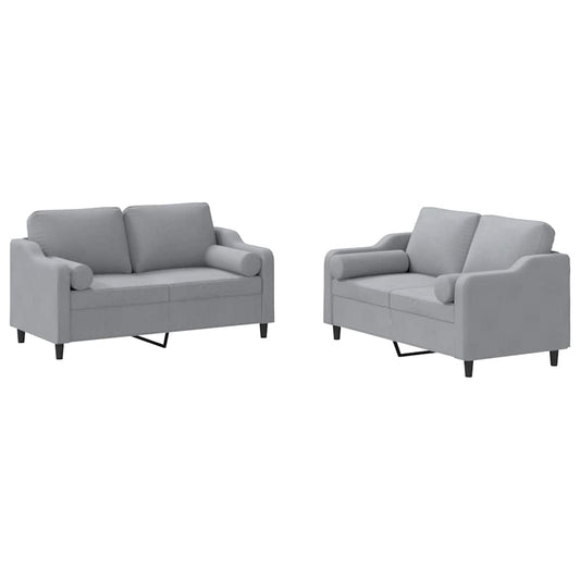 Set Divani 2 pz con Cuscini Grigio Chiaro in Tessuto