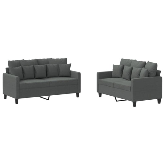 Set di Divani 2 pz con Cuscini Grigio Scuro in Tessuto