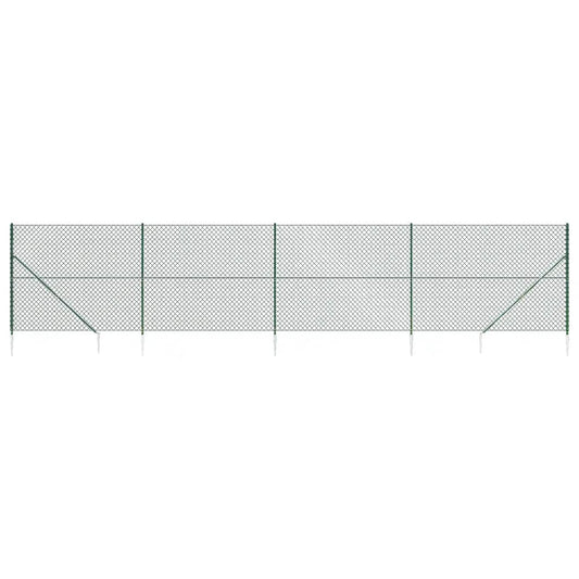 Metal Fence with Green Anchoring Pickets 1.6x10 m