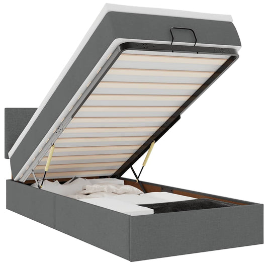 Pouf Letto con Materasso e LED Grigio Scuro 90x200 cm Tessuto