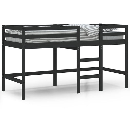 Letto Soppalco con Scala Bambini Nero 80x200cm Massello Pino
