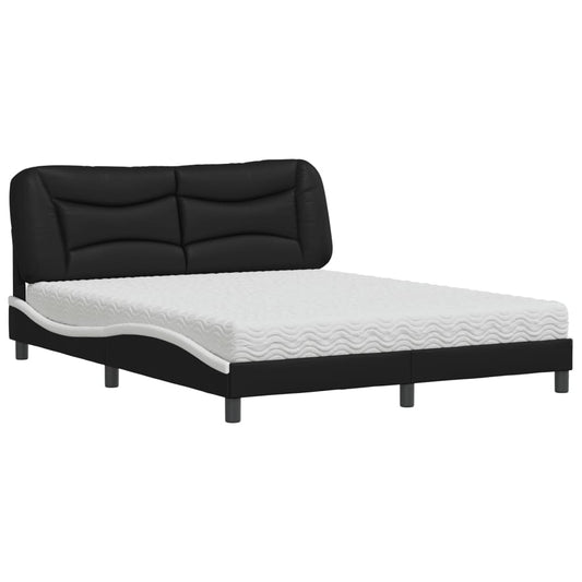 Letto con Materasso Hvar Nero e Bianco 160x200cm Similpelle