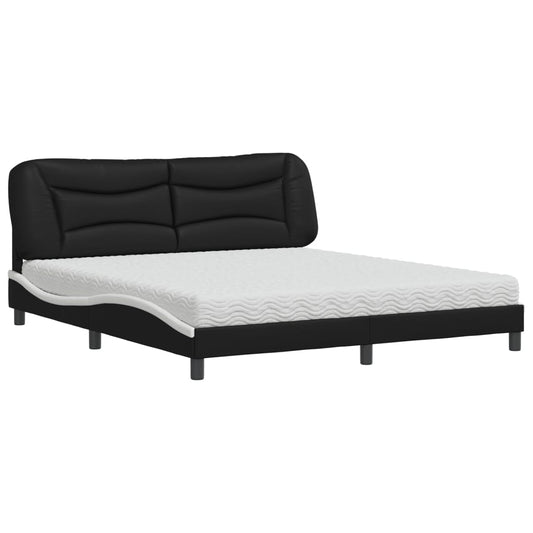 Letto con Materasso Hvar Nero e Bianco 180x200 cm in Similpelle