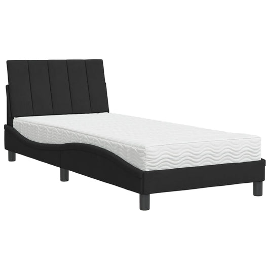 Letto con Materasso Hanko Nero 100x200 cm in Velluto