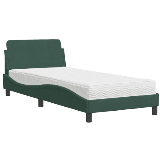 Letto con Materasso Dover Verde Scuro 80x200 cm in Velluto
