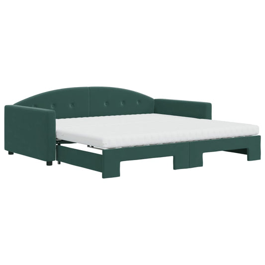 Divano Letto con Materasso Verde Scuro 90x200 cm in Velluto
