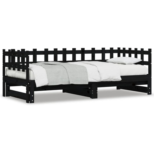 Dormeuse Estraibile Nera 2x(90x200) cm Legno Massello di Pino