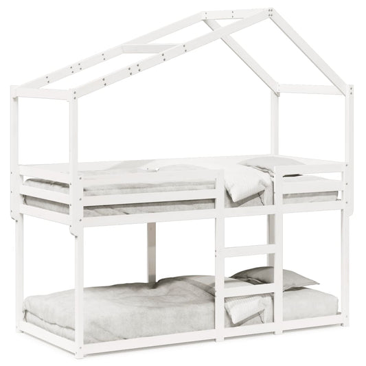 Letto a Castello con Tetto Bianco 90x200 cm in Legno di Pino
