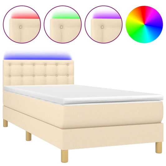 Letto a Molle con Materasso e LED Crema 90x190 cm in Tessuto