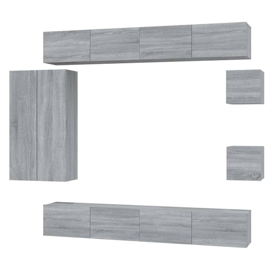 Set di Mobili Porta TV 8 pz Grigio Sonoma in Legno Multistrato
