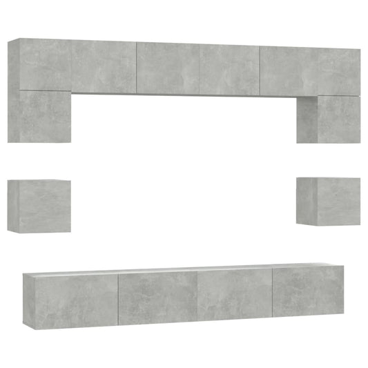 Set Mobili Porta TV 8pz Grigio Cemento in Legno Multistrato