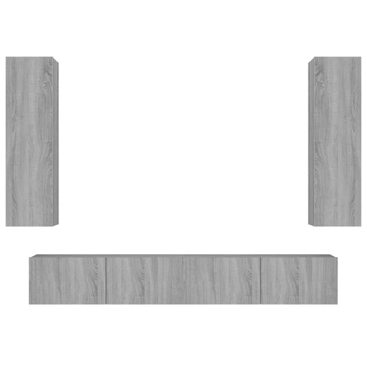 Set di Mobili Porta TV 4 pz Grigio Sonoma in Legno Multistrato