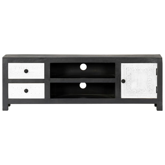 Mobile TV Intagliato a Mano Grigio Bianco 120x30x40 cm in Mango