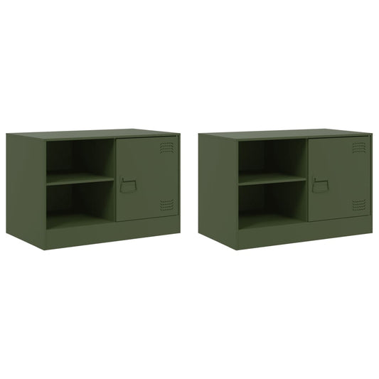 Mobili TV 2 pz Verde Oliva 67x39x44 cm in Acciaio