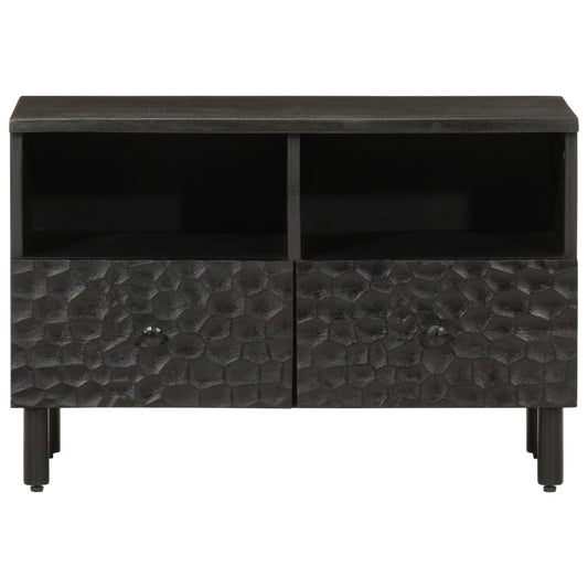 Mobile Porta TV Nero 70x33x46 cm in Legno Massello di Mango