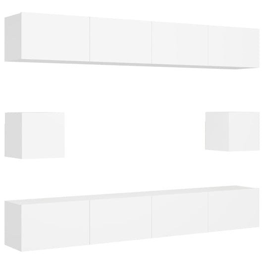 6 pc White TV Stand Furniture Set in Multilayer Wood