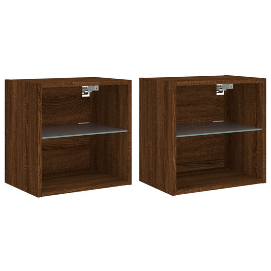 Mobili TV a Parete con Luci LED 2pz Rovere Marrone 30,5x35x30cm
