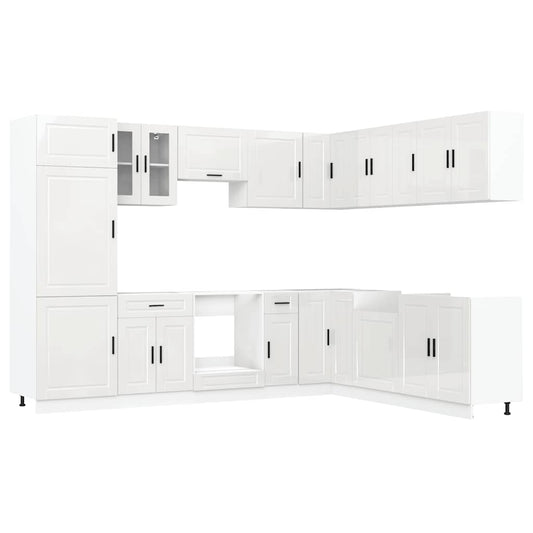 Set Mobili da Cucina 14 pz Kalmar Bianchi Lucido in Truciolato