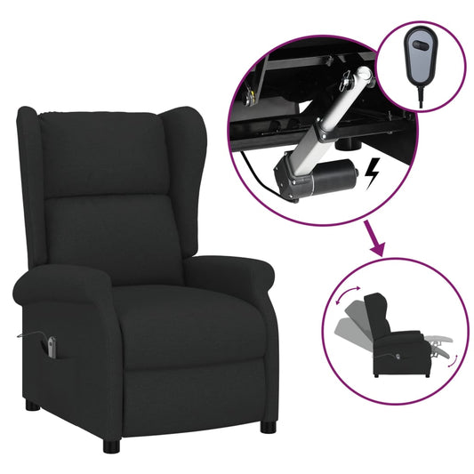 Poltrona ad Ala Reclinabile Elettrica Nera in Tessuto