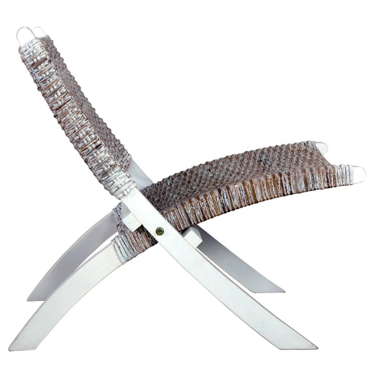 Sedia Relax Bianca in Rattan Kubu Naturale e Mogano Massello