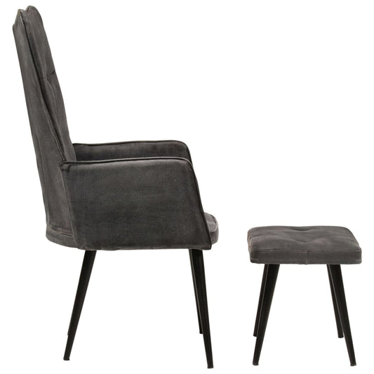 Poltrona a Schienale Alto con Poggiapiedi Nero Vintage Tela