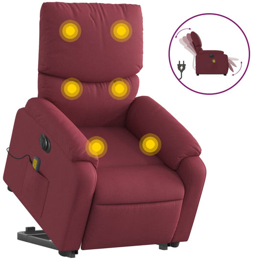 Poltrona Alzapersona Massaggiante Elettrica Rosso Vino Tessuto
