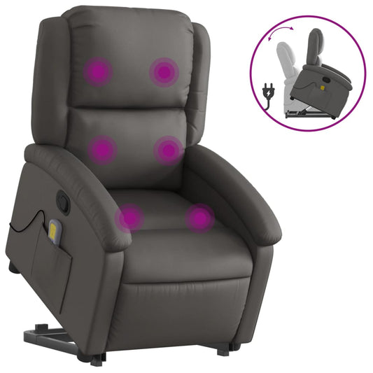 Poltrona Alzapersona Massaggiante Reclinabile Grigia Vera Pelle