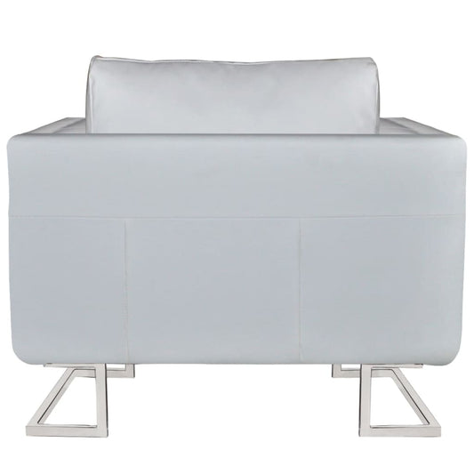 Poltrona a Pozzetto con Gambe Cromate Bianca in Similpelle