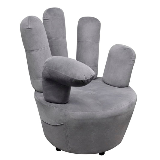 Poltrona a Forma di Mano Grigia in Velluto