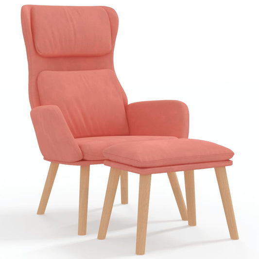 Poltrona Relax con Poggiapiedi Rosa in Velluto