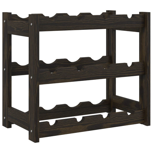 Portabottiglie per 12 Bottiglie Nero Legno Massello di Pino