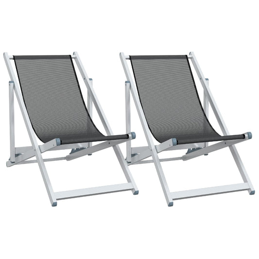 Sedie da Spiaggia Pieghevoli 2 pz Grigie Alluminio e Textilene