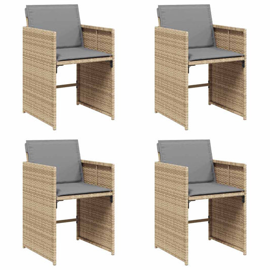 Sedie da Giardino con Cuscini 4 pz Beige Misto in Polyrattan