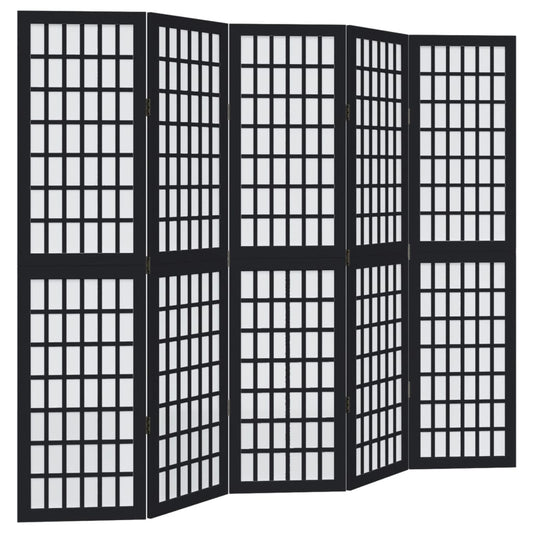 Divisorio Ambienti 5 Pannelli Nero Legno Massello di Paulownia