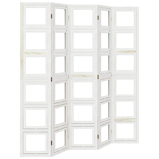 Divisorio Ambienti 5Pannelli Bianco Legno Massello di Paulownia