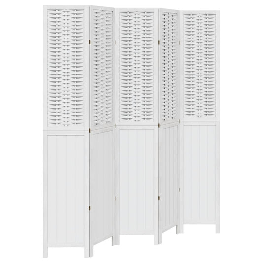 Divisorio Ambienti 5Pannelli Bianco Legno Massello di Paulownia