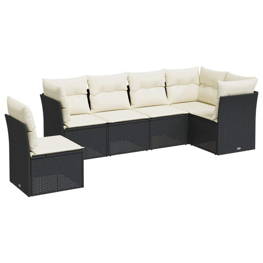Set Divano da Giardino 6 pz con Cuscini Nero in Polyrattan