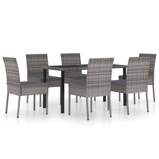 7-piece Garden Dining Set with Black Polyrattan Cushions