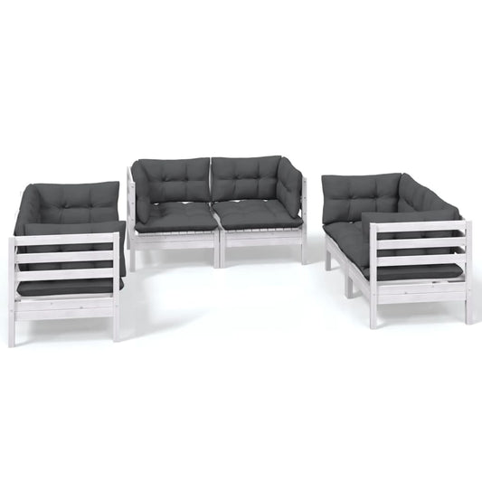 Set Salotto da Giardino 7pz con Cuscini Legno Massello di Pino