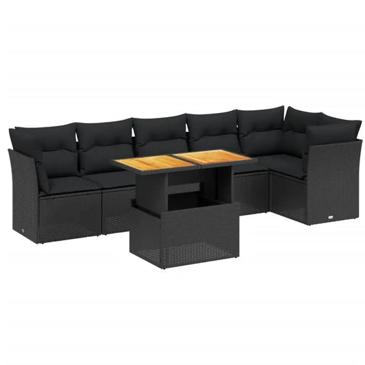 Garden Sofa Set with Cushions 7pcs Black Polyrattan