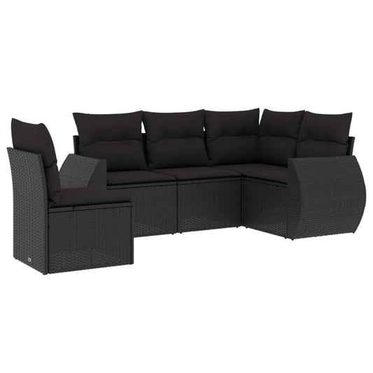 Set Divani da Giardino 5 pz con Cuscini in Polyrattan Nero