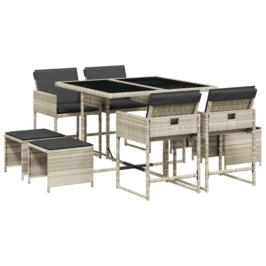 Set da Pranzo da Giardino 7 pz Cuscini Polyrattan Grigio Chiaro